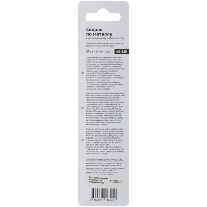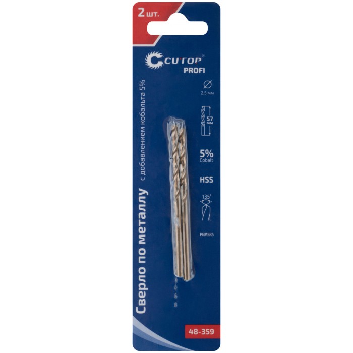 Сверло по металлу Cutop Profi с кобальтом 5% 2,5 x 57 мм, 2 шт. (48-359)