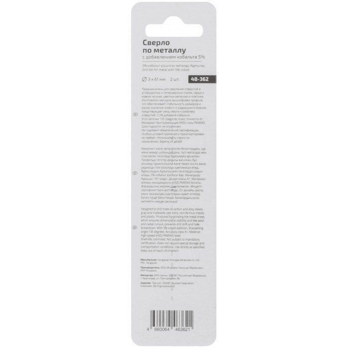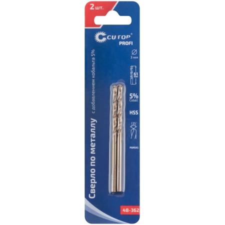 Сверло по металлу Cutop Profi с кобальтом 5% 3 x 61 мм, 2 шт. (48-362)