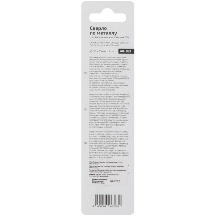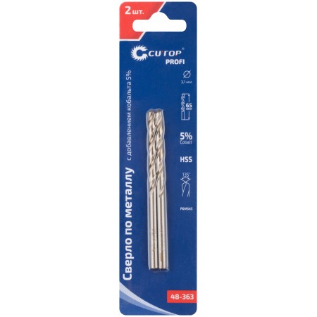 Сверло по металлу Cutop Profi с кобальтом 5% 3,1 x 65 мм, 2 шт. (48-363)