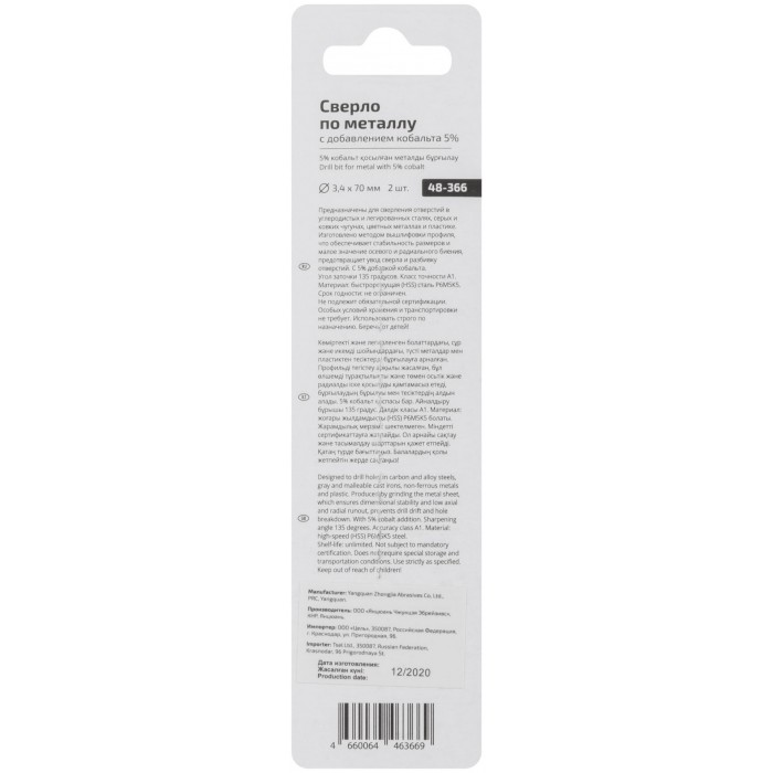 Сверло по металлу Cutop Profi с кобальтом 5% 3,4 x 70 мм, 2 шт. (48-366)