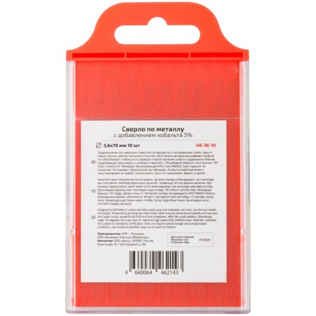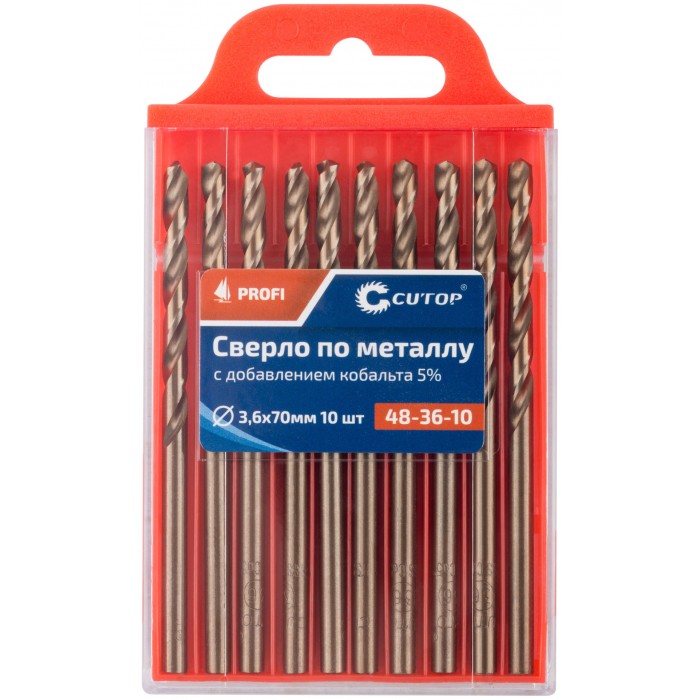 Сверло по металлу Cutop Profi с кобальтом 5%, 3,6 x 70 мм (10 шт) (48-36-10)
