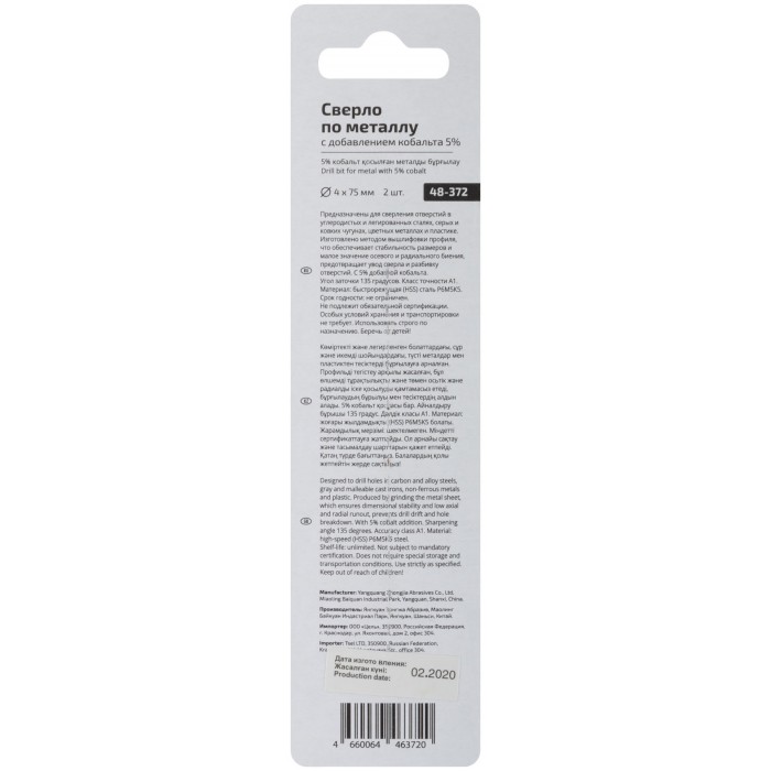 Сверло по металлу Cutop Profi с кобальтом 5% 4 x 75 мм, 2 шт. (48-372)