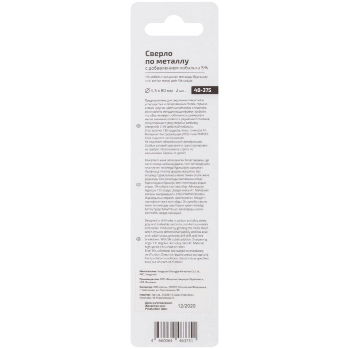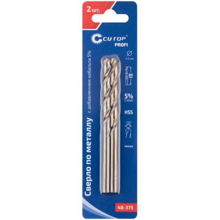 Сверло по металлу Cutop Profi с кобальтом 5% 4,5 x 80 мм, 2 шт. (48-375)