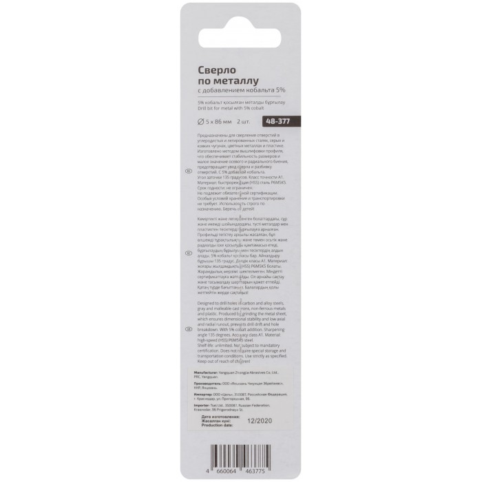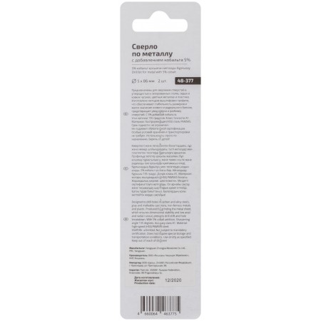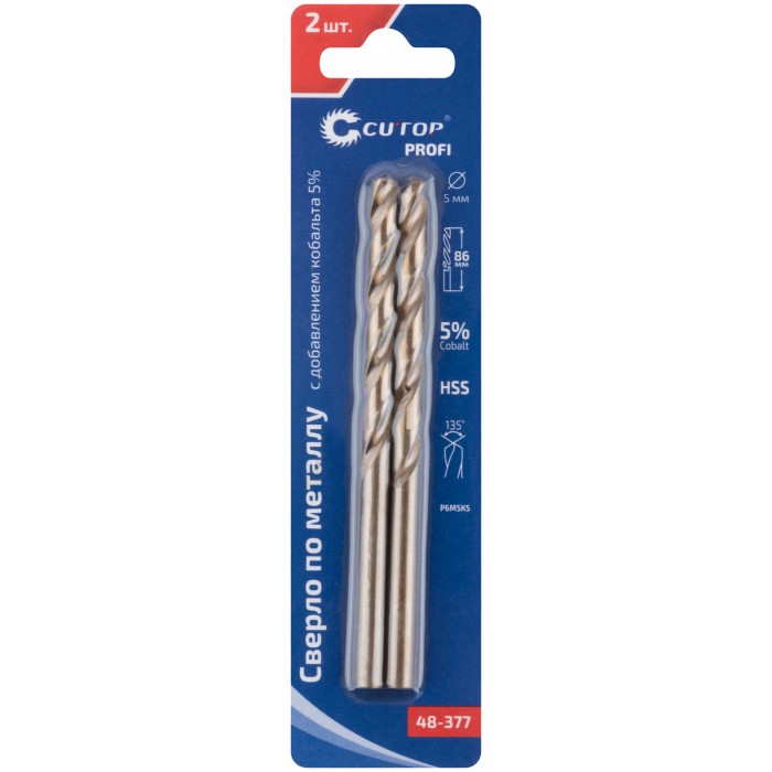 Сверло по металлу Cutop Profi с кобальтом 5% 5 x 86 мм, 2 шт. (48-377)