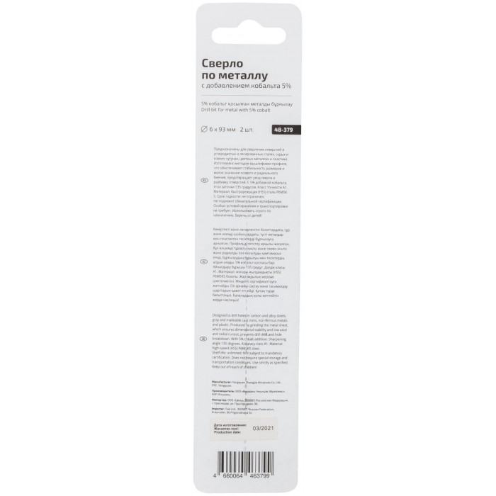 Сверло по металлу Cutop Profi с кобальтом 5% 6 x 93 мм, 2 шт. (48-379)