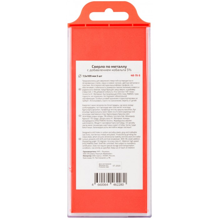 Сверло по металлу Cutop Profi с кобальтом 5%, 7,5 x 109 мм (5 шт) (48-75-5)