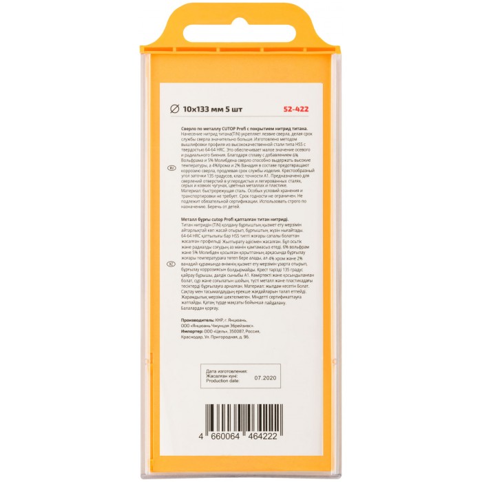 Сверло по металлу Cutop Profi с титановым покрытием, 10х133 мм (5 шт) (52-422)