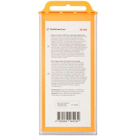 Материал: быстрорежущая сталь. Упаковка: подвесной пластиковый бокс.