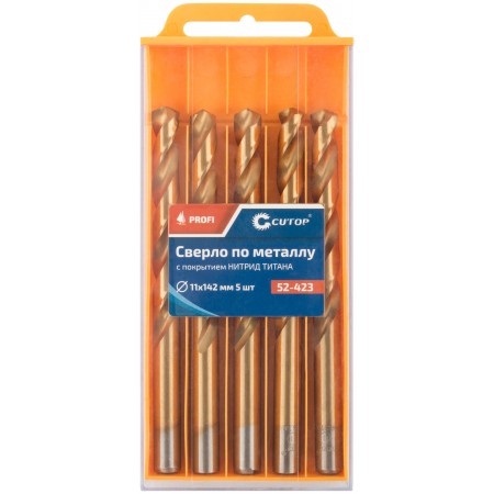 Сверло по металлу Cutop Profi с титановым покрытием, 11х142 мм (5 шт) (52-423)