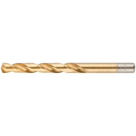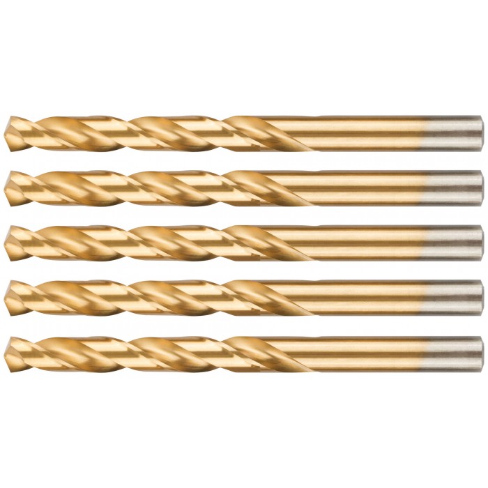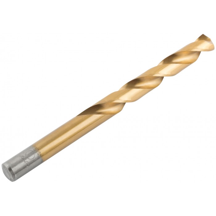 Нанесение нитрид титана(TiN) укрепляет лезвие сверла, делая срок службы сверла значительно больше. Изготовлено методом вышлифовки профиля из высококачественной стали типа HSS с твердостью 64-64 HRC. Это обеспечивает малое значение осевого и радиального биения. Благодаря сплаву с добавлением 6% Вольфрама и 5% Молибдена сверло способно выдержать высокие температуры, а 4% Хрома и 2% Ванадия в составе предотвращают коррозию сверла, продлевая срок службы изделия. Крестообразный угол заточки 135°, класс точности А1. Предназначено для сверлений отверстий в углеродистых и легированных сталях, серых и ковких чугунах, цветных металлах и пластике.
