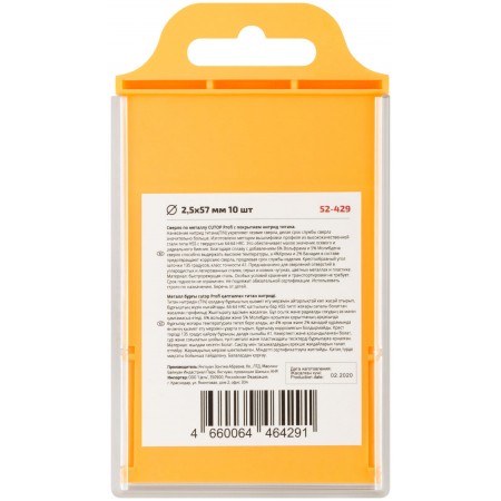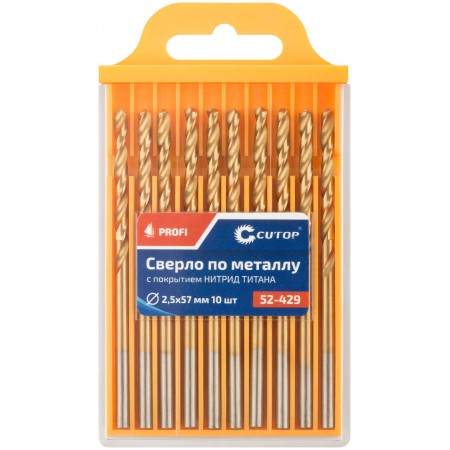 Сверло по металлу Cutop Profi с титановым покрытием, 2,5х57 мм (10 шт) (52-429)