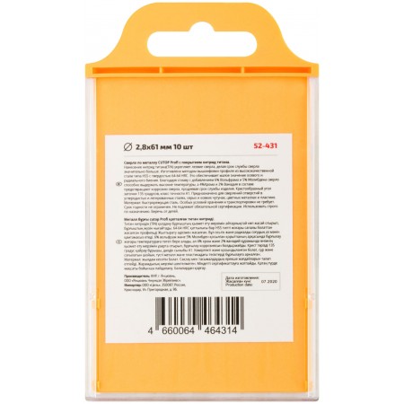 Сверло по металлу Cutop Profi с титановым покрытием, 2,8х61мм (10 шт) (52-431)