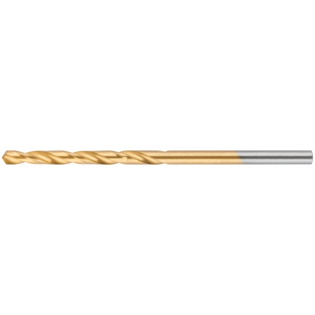 Нанесение нитрид титана(TiN) укрепляет лезвие сверла, делая срок службы сверла значительно больше. Изготовлено методом вышлифовки профиля из высококачественной стали типа HSS с твердостью 64-64 HRC. Это обеспечивает малое значение осевого и радиального биения. Благодаря сплаву с добавлением 6% Вольфрама и 5% Молибдена сверло способно выдержать высокие температуры, а 4% Хрома и 2% Ванадия в составе предотвращают коррозию сверла, продлевая срок службы изделия. Крестообразный угол заточки 135°, класс точности А1. Предназначено для сверлений отверстий в углеродистых и легированных сталях, серых и ковких чугунах, цветных металлах и пластике.