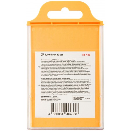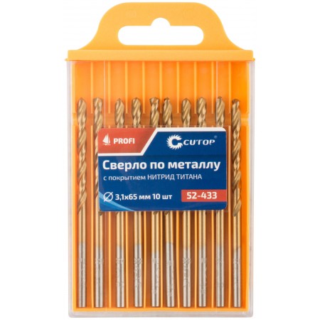 Сверло по металлу Cutop Profi с титановым покрытием, 3,1х65 мм (10 шт) (52-433)