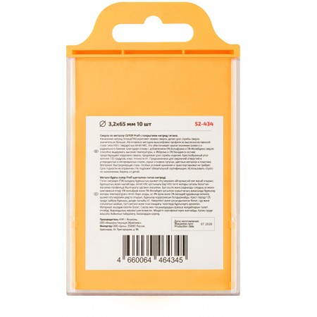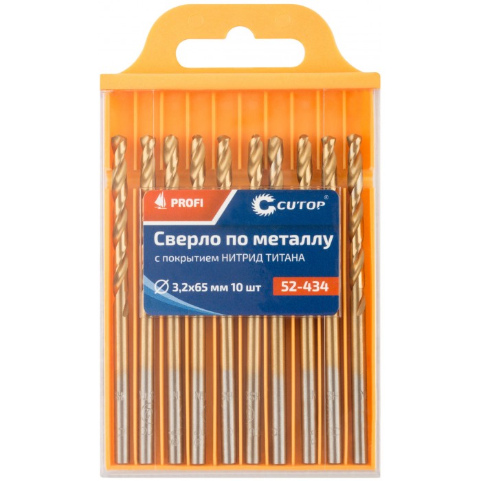 Сверло по металлу Cutop Profi с титановым покрытием, 3,2х65 мм (10 шт) (52-434)