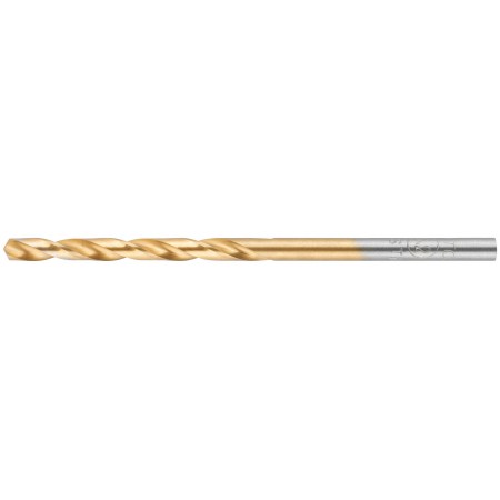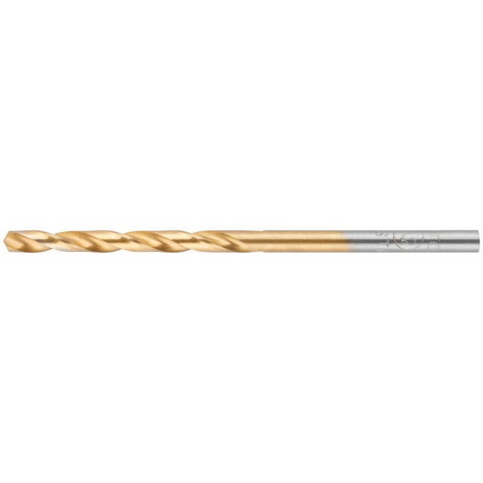 Нанесение нитрид титана(TiN) укрепляет лезвие сверла, делая срок службы сверла значительно больше. Изготовлено методом вышлифовки профиля из высококачественной стали типа HSS с твердостью 64-64 HRC. Это обеспечивает малое значение осевого и радиального биения. Благодаря сплаву с добавлением 6% Вольфрама и 5% Молибдена сверло способно выдержать высокие температуры, а 4% Хрома и 2% Ванадия в составе предотвращают коррозию сверла, продлевая срок службы изделия. Крестообразный угол заточки 135°, класс точности А1. Предназначено для сверлений отверстий в углеродистых и легированных сталях, серых и ковких чугунах, цветных металлах и пластике.