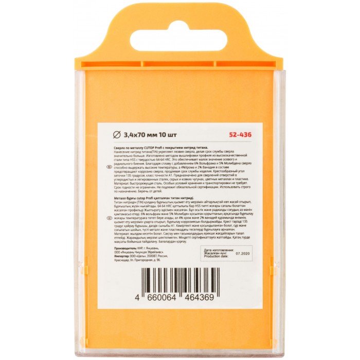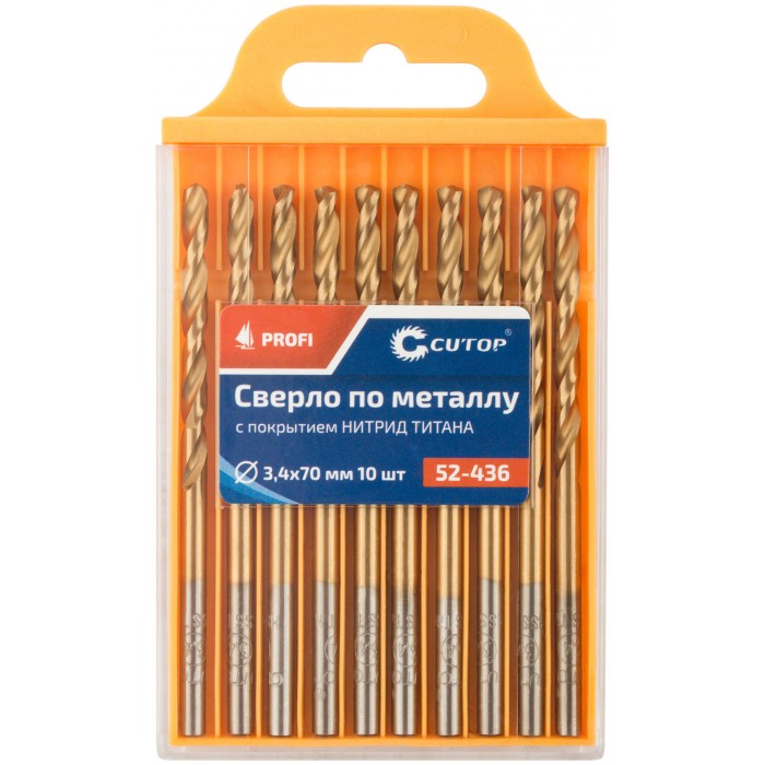 Сверло по металлу Cutop Profi с титановым покрытием, 3,4х70 мм (10 шт) (52-436)