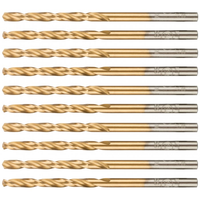 Нанесение нитрид титана(TiN) укрепляет лезвие сверла, делая срок службы сверла значительно больше. Изготовлено методом вышлифовки профиля из высококачественной стали типа HSS с твердостью 64-64 HRC. Это обеспечивает малое значение осевого и радиального биения. Благодаря сплаву с добавлением 6% Вольфрама и 5% Молибдена сверло способно выдержать высокие температуры, а 4% Хрома и 2% Ванадия в составе предотвращают коррозию сверла, продлевая срок службы изделия. Крестообразный угол заточки 135°, класс точности А1. Предназначено для сверлений отверстий в углеродистых и легированных сталях, серых и ковких чугунах, цветных металлах и пластике.