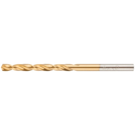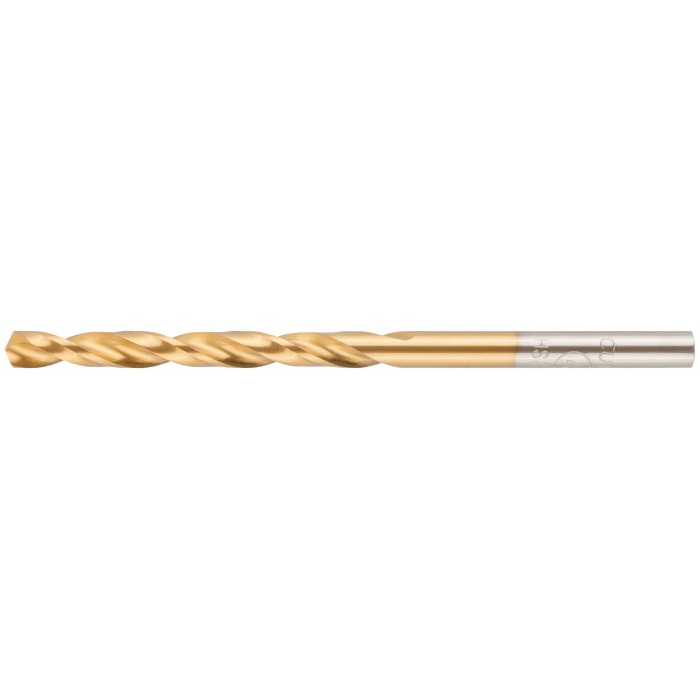 Нанесение нитрид титана(TiN) укрепляет лезвие сверла, делая срок службы сверла значительно больше. Изготовлено методом вышлифовки профиля из высококачественной стали типа HSS с твердостью 64-64 HRC. Это обеспечивает малое значение осевого и радиального биения. Благодаря сплаву с добавлением 6% Вольфрама и 5% Молибдена сверло способно выдержать высокие температуры, а 4% Хрома и 2% Ванадия в составе предотвращают коррозию сверла, продлевая срок службы изделия. Крестообразный угол заточки 135°, класс точности А1. Предназначено для сверлений отверстий в углеродистых и легированных сталях, серых и ковких чугунах, цветных металлах и пластике.