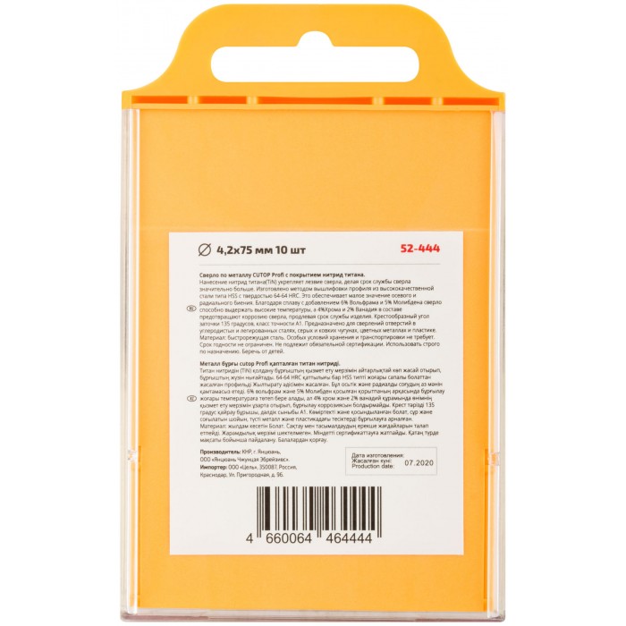 Сверло по металлу Cutop Profi с титановым покрытием, 4,2х75 мм (10 шт) (52-444)