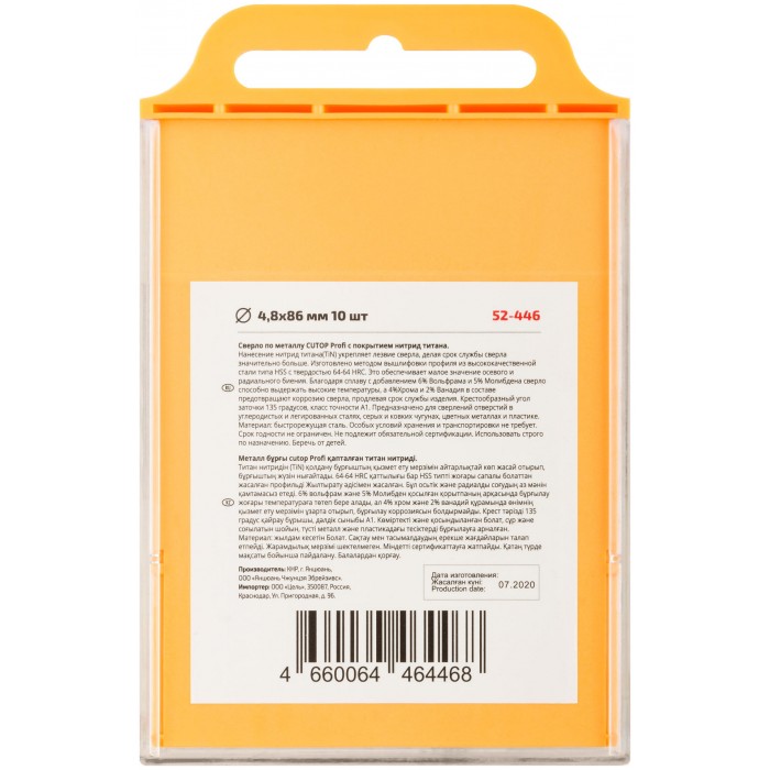 Сверло по металлу Cutop Profi с титановым покрытием, 4,8х86 мм (10 шт) (52-446)