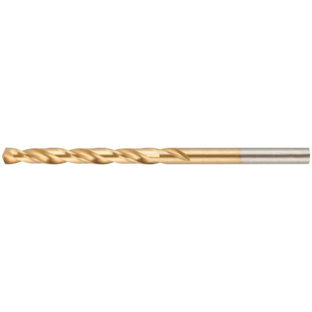 Нанесение нитрид титана(TiN) укрепляет лезвие сверла, делая срок службы сверла значительно больше. Изготовлено методом вышлифовки профиля из высококачественной стали типа HSS с твердостью 64-64 HRC. Это обеспечивает малое значение осевого и радиального биения. Благодаря сплаву с добавлением 6% Вольфрама и 5% Молибдена сверло способно выдержать высокие температуры, а 4% Хрома и 2% Ванадия в составе предотвращают коррозию сверла, продлевая срок службы изделия. Крестообразный угол заточки 135°, класс точности А1. Предназначено для сверлений отверстий в углеродистых и легированных сталях, серых и ковких чугунах, цветных металлах и пластике.