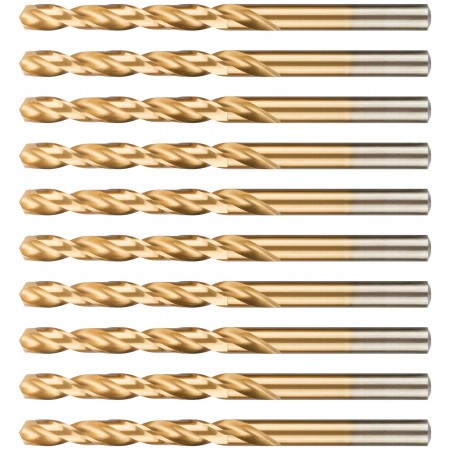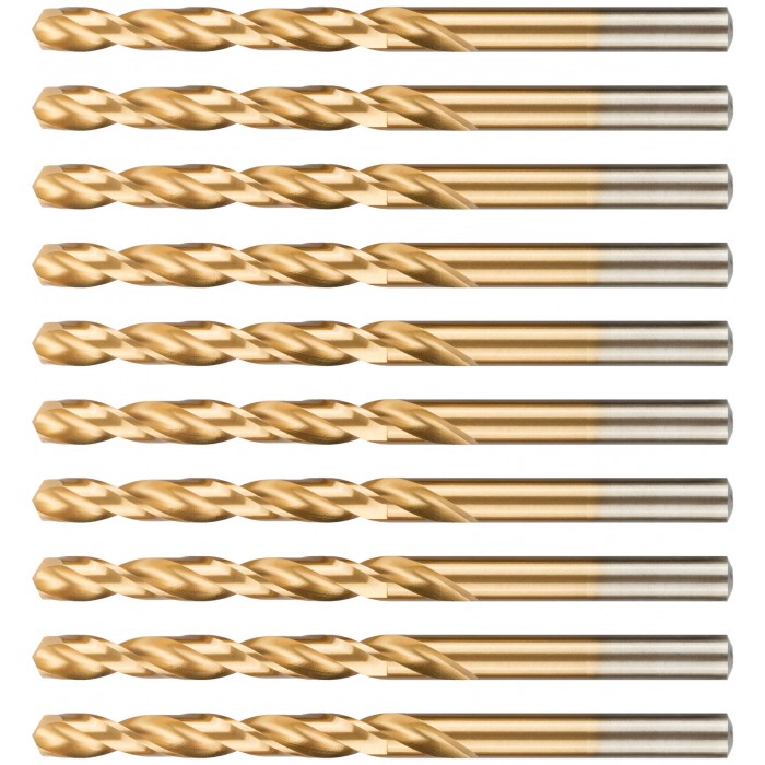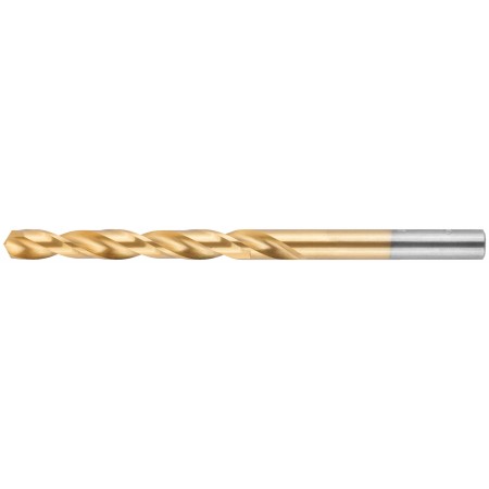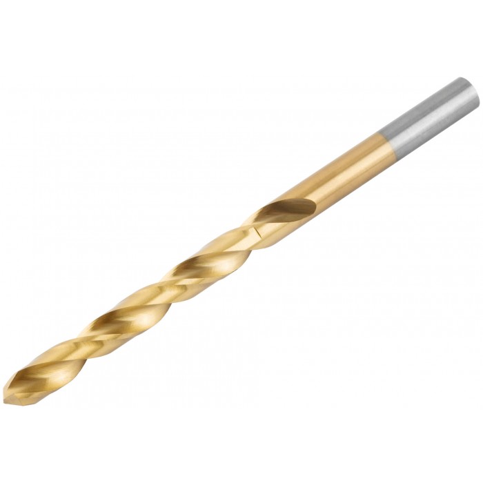 Нанесение нитрид титана(TiN) укрепляет лезвие сверла, делая срок службы сверла значительно больше. Изготовлено методом вышлифовки профиля из высококачественной стали типа HSS с твердостью 64-64 HRC. Это обеспечивает малое значение осевого и радиального биения. Благодаря сплаву с добавлением 6% Вольфрама и 5% Молибдена сверло способно выдержать высокие температуры, а 4% Хрома и 2% Ванадия в составе предотвращают коррозию сверла, продлевая срок службы изделия. Крестообразный угол заточки 135°, класс точности А1. Предназначено для сверлений отверстий в углеродистых и легированных сталях, серых и ковких чугунах, цветных металлах и пластике.