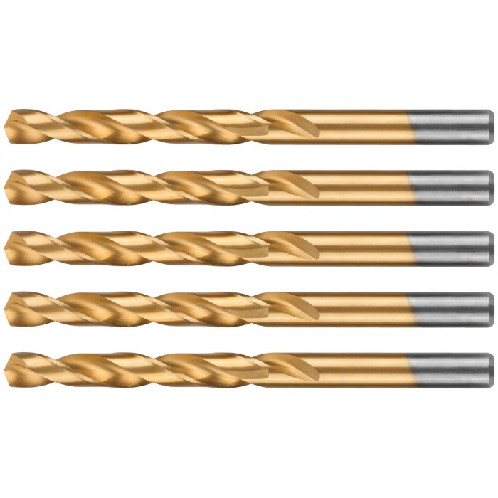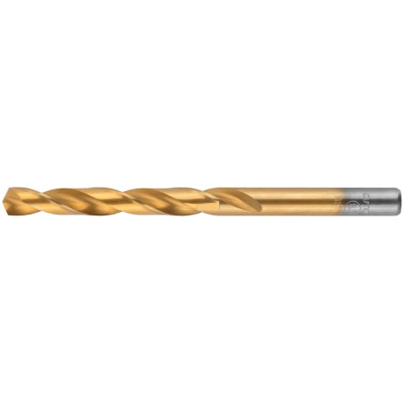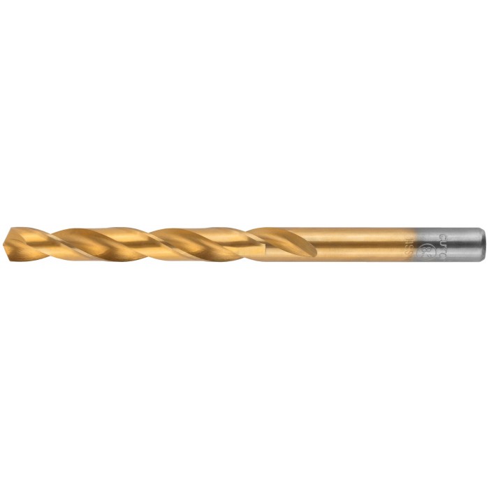 Нанесение нитрид титана(TiN) укрепляет лезвие сверла, делая срок службы сверла значительно больше. Изготовлено методом вышлифовки профиля из высококачественной стали типа HSS с твердостью 64-64 HRC. Это обеспечивает малое значение осевого и радиального биения. Благодаря сплаву с добавлением 6% Вольфрама и 5% Молибдена сверло способно выдержать высокие температуры, а 4% Хрома и 2% Ванадия в составе предотвращают коррозию сверла, продлевая срок службы изделия. Крестообразный угол заточки 135°, класс точности А1. Предназначено для сверлений отверстий в углеродистых и легированных сталях, серых и ковких чугунах, цветных металлах и пластике.