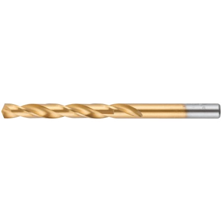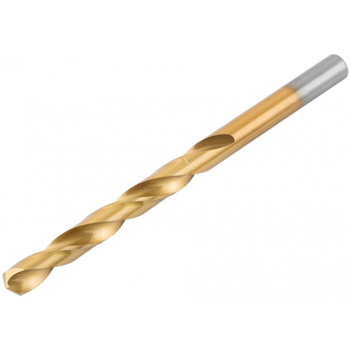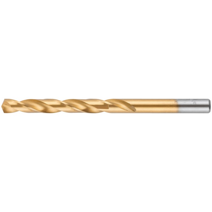 Нанесение нитрид титана(TiN) укрепляет лезвие сверла, делая срок службы сверла значительно больше. Изготовлено методом вышлифовки профиля из высококачественной стали типа HSS с твердостью 64-64 HRC. Это обеспечивает малое значение осевого и радиального биения. Благодаря сплаву с добавлением 6% Вольфрама и 5% Молибдена сверло способно выдержать высокие температуры, а 4% Хрома и 2% Ванадия в составе предотвращают коррозию сверла, продлевая срок службы изделия. Крестообразный угол заточки 135°, класс точности А1. Предназначено для сверлений отверстий в углеродистых и легированных сталях, серых и ковких чугунах, цветных металлах и пластике.