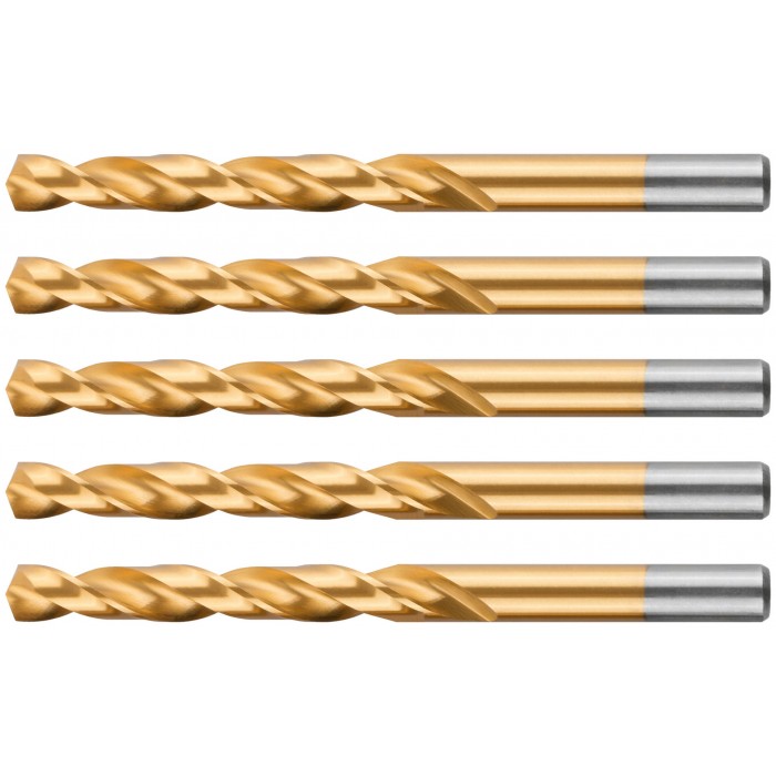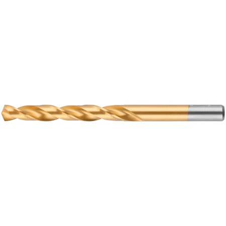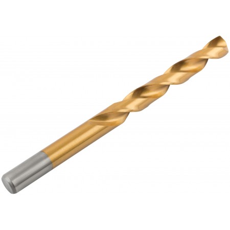 Нанесение нитрид титана(TiN) укрепляет лезвие сверла, делая срок службы сверла значительно больше. Изготовлено методом вышлифовки профиля из высококачественной стали типа HSS с твердостью 64-64 HRC. Это обеспечивает малое значение осевого и радиального биения. Благодаря сплаву с добавлением 6% Вольфрама и 5% Молибдена сверло способно выдержать высокие температуры, а 4% Хрома и 2% Ванадия в составе предотвращают коррозию сверла, продлевая срок службы изделия. Крестообразный угол заточки 135°, класс точности А1. Предназначено для сверлений отверстий в углеродистых и легированных сталях, серых и ковких чугунах, цветных металлах и пластике.