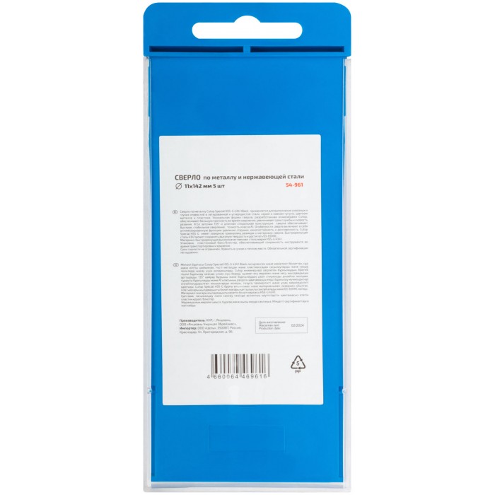 Сверло по металлу Cutop Special, HSS-G, 11 х 142/84 мм (5 шт) (54-961)