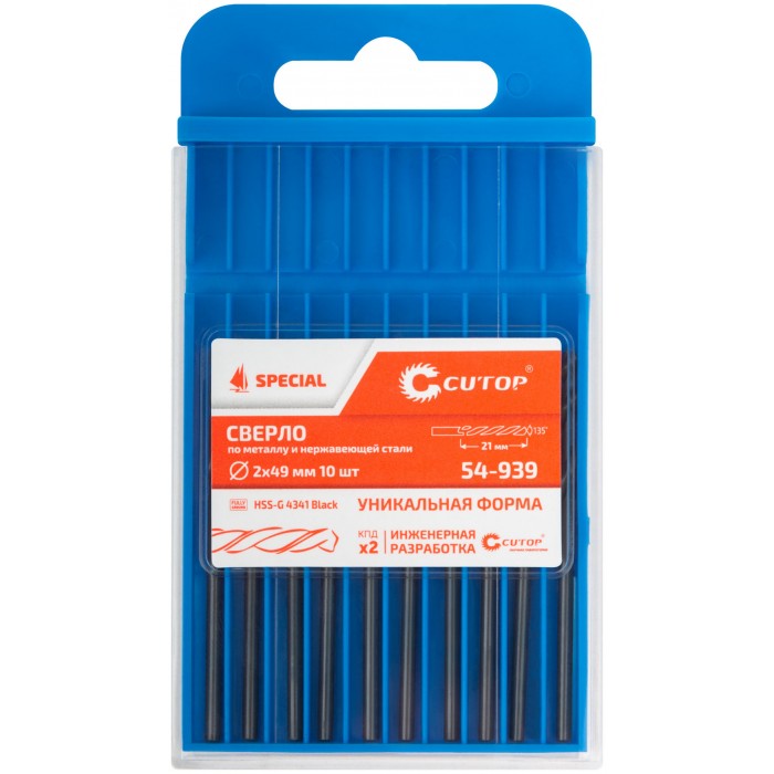 Сверло по металлу Cutop Special, HSS-G, 2 х 49/21 мм (10 шт) (54-939)