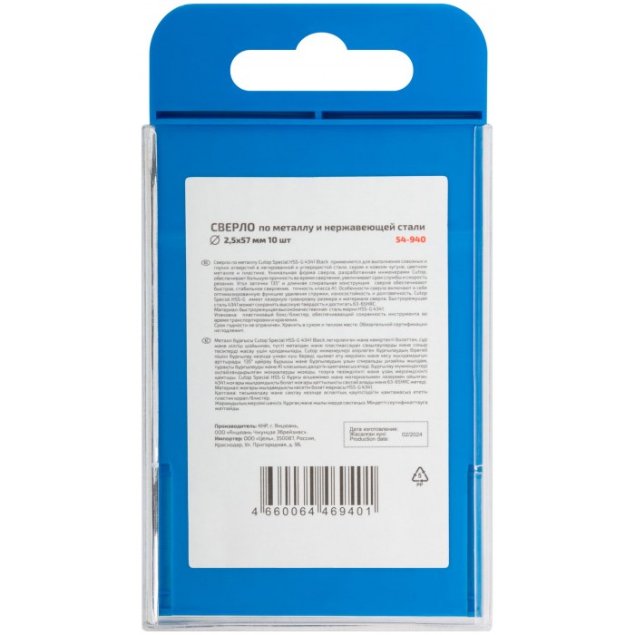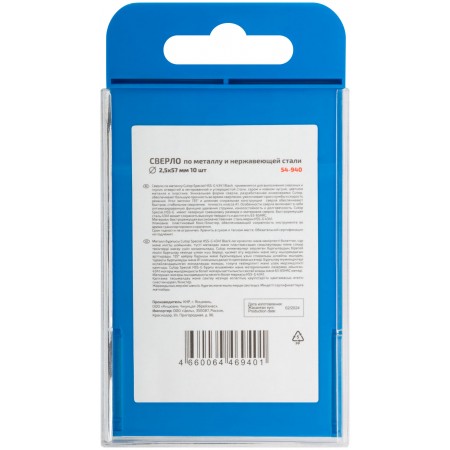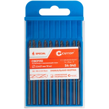 Сверло по металлу Cutop Special, HSS-G, 2,5 х 57/27 мм (10 шт) (54-940)