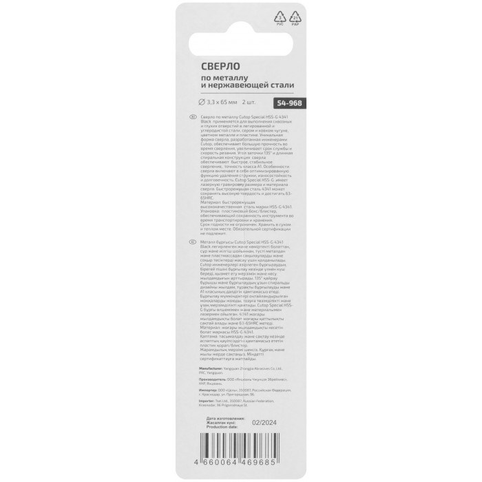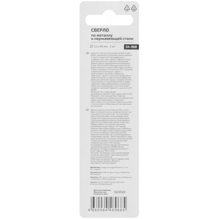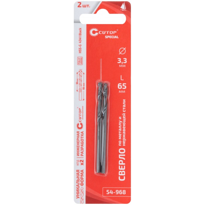 Сверло по металлу Cutop Special, HSS-G, 3,3 х 65/32 мм (2 шт) (54-968)