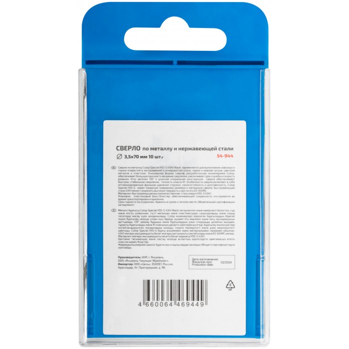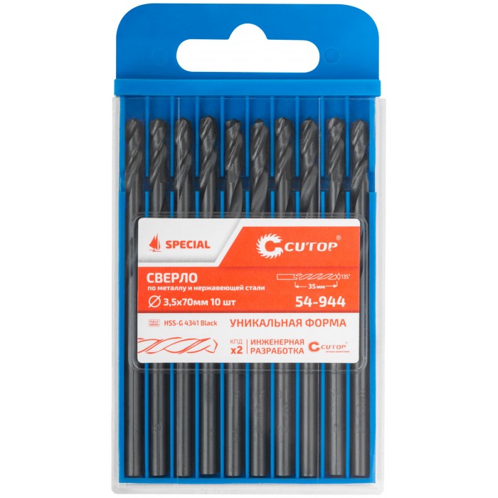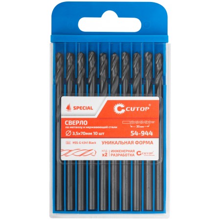 Сверло по металлу Cutop Special, HSS-G, 3,5 х 70/35 мм (10 шт) (54-944)