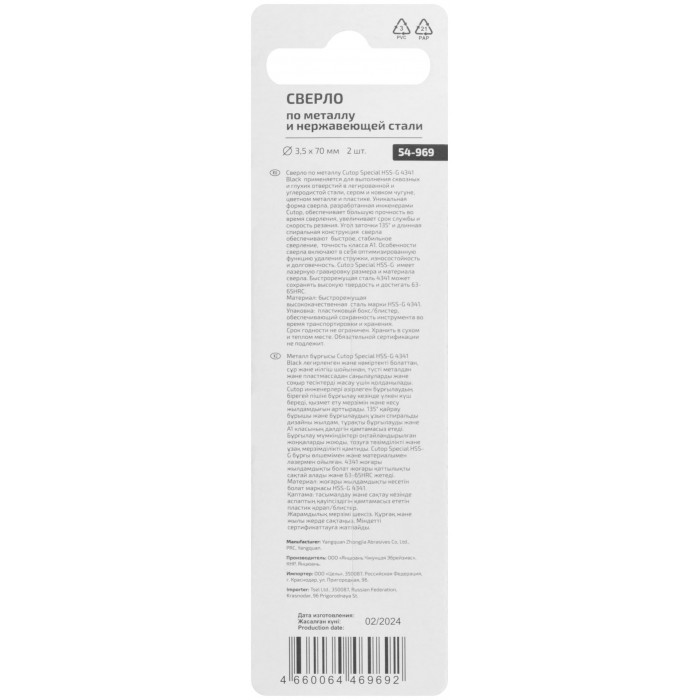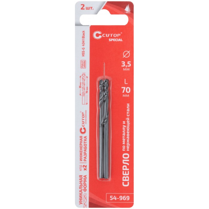 Сверло по металлу Cutop Special, HSS-G, 3,5 х 70/35 мм (2 шт) (54-969)