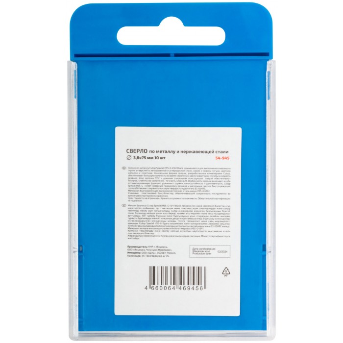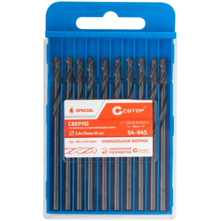Сверло по металлу Cutop Special, HSS-G, 3,8 х 75/38 мм (10 шт) (54-945)
