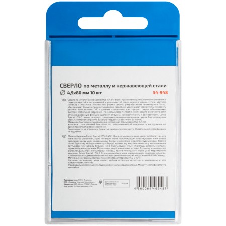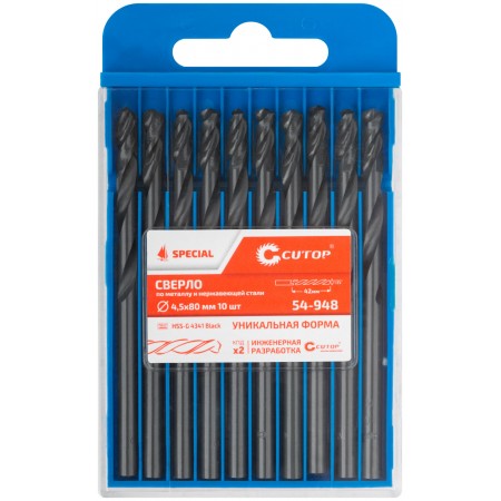 Сверло по металлу Cutop Special, HSS-G, 4,5 х 80/42 мм (10 шт) (54-948)