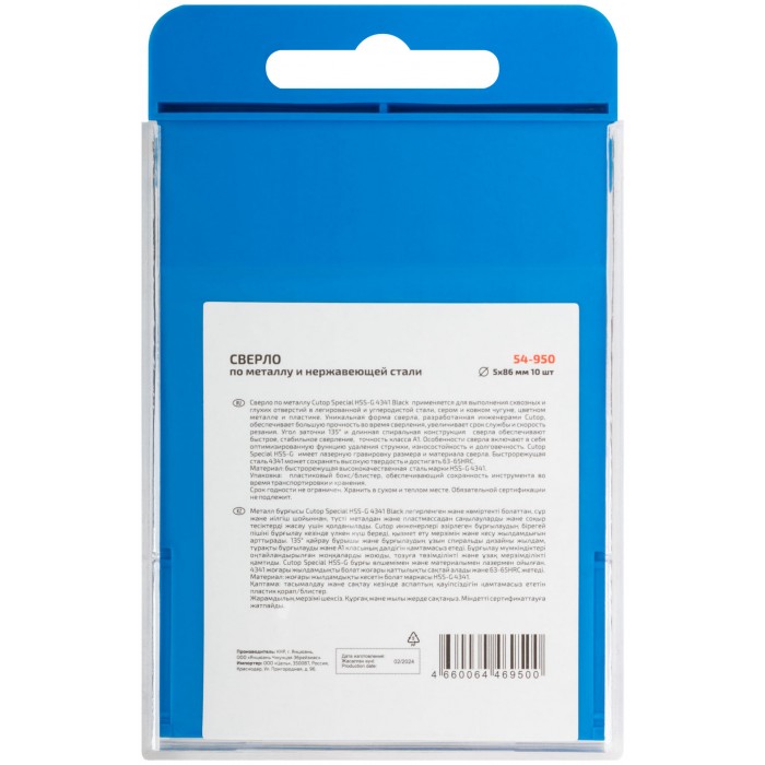 Сверло по металлу Cutop Special, HSS-G, 5 х 86/46 мм (10 шт) (54-950)