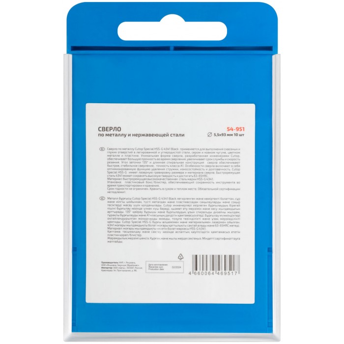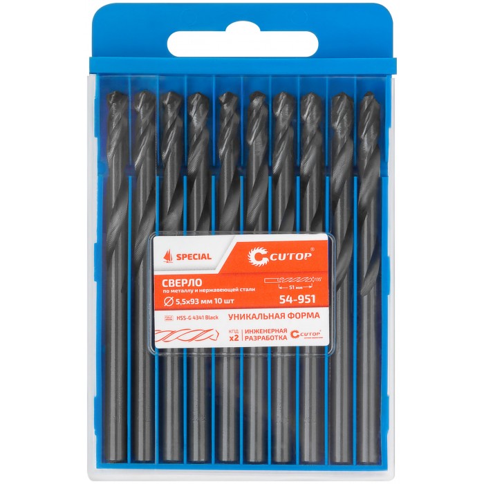 Сверло по металлу Cutop Special, HSS-G, 5,5 х 93/51 мм (10 шт) (54-951)