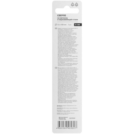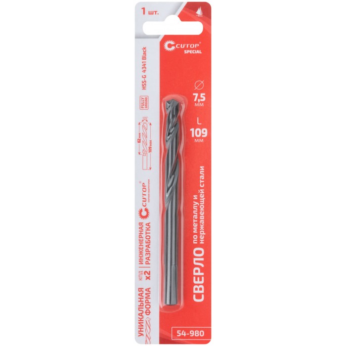 Сверло по металлу Cutop Special, HSS-G, 7,5 х 109/62 мм (1 шт) (54-980)