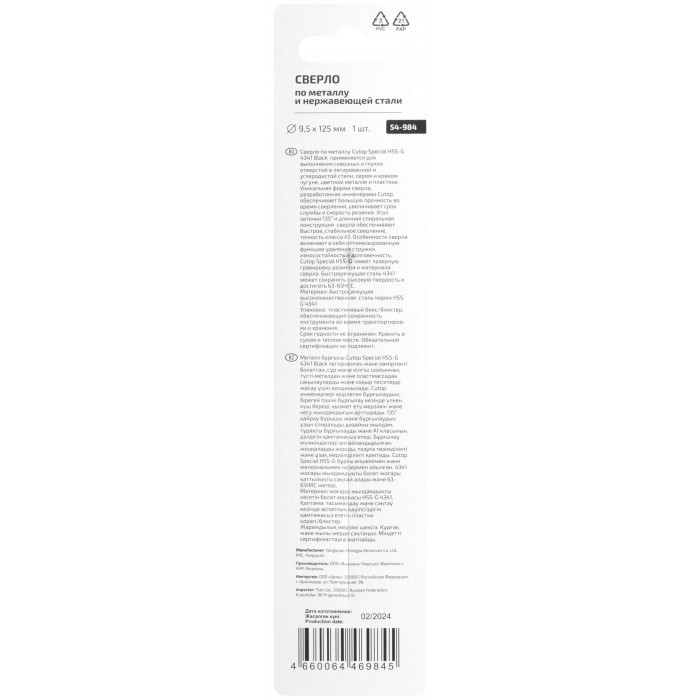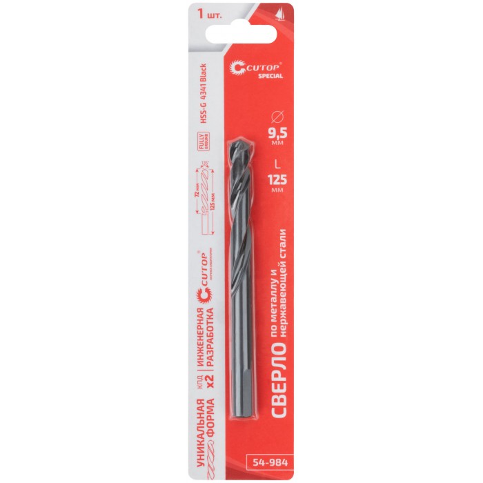 Сверло по металлу Cutop Special, HSS-G, 9,5 х 125/72 мм (1 шт) (54-984)