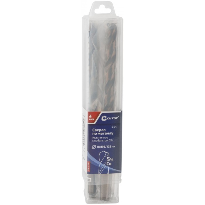 Сверло по металлу удлиненное CUTOP Profi с кобальтом 5%, 11 х 195 мм (5 шт.) (48-11-195)