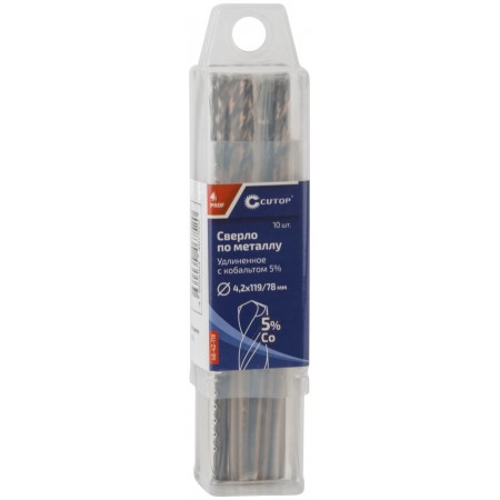 Сверло по металлу удлиненное CUTOP Profi с кобальтом 5%, 4,2 х 119 мм (10 шт.) (48-42-119)