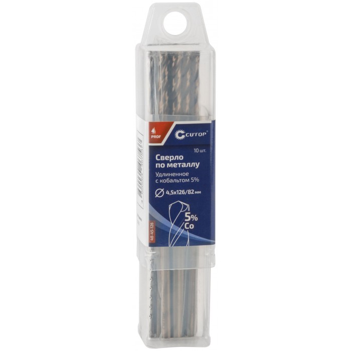 Сверло по металлу удлиненное CUTOP Profi с кобальтом 5%, 4,5 х 126 мм(10 шт.) (48-45-126)