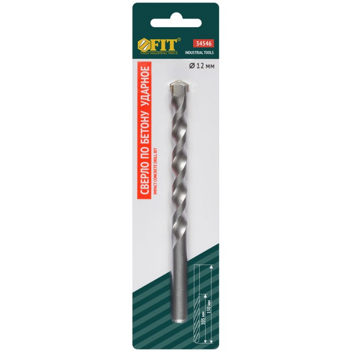 Сверло победитовое ударное, цилиндрический хвостовик (для бетона, кирпича) 12х150 мм (34546)