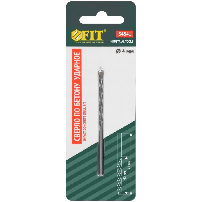 Сверло победитовое ударное, цилиндрический хвостовик (для бетона, кирпича) 4х75 мм (34541)