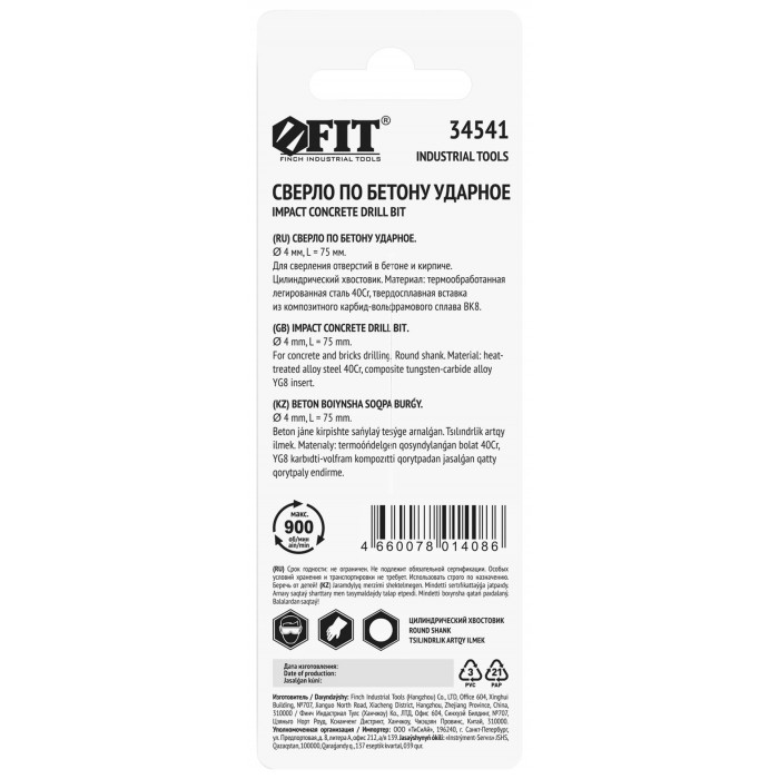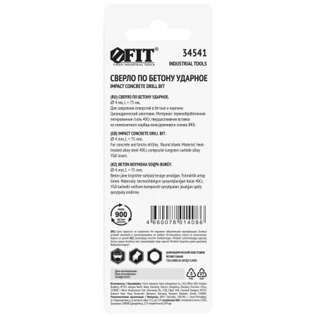 Цилиндрический хвостовик. Для бетона и кирпича. Материал: легированная инструментальная сталь 40Cr с твердосплавной вставкой. Упаковка: блистер.