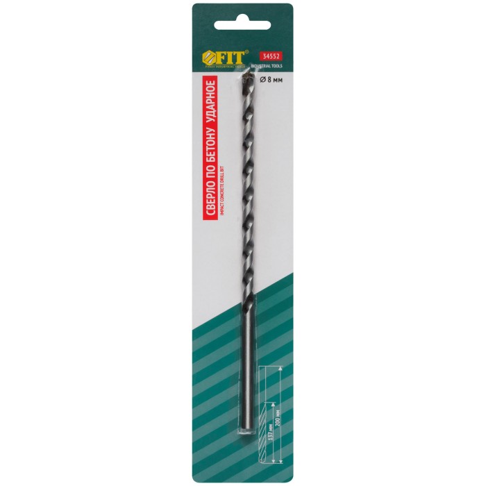 Сверло победитовое ударное, цилиндрический хвостовик (для бетона, кирпича) 8х200 мм (34552)