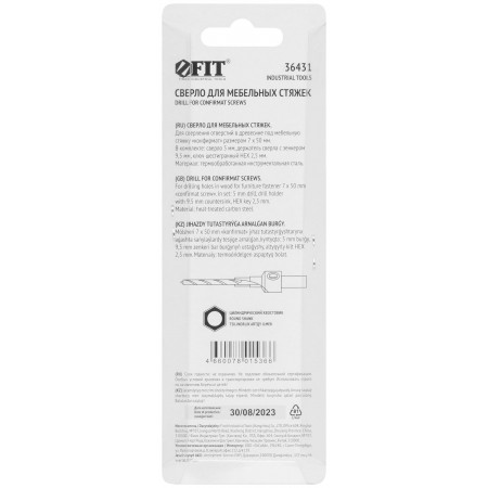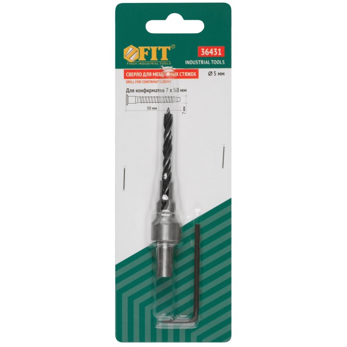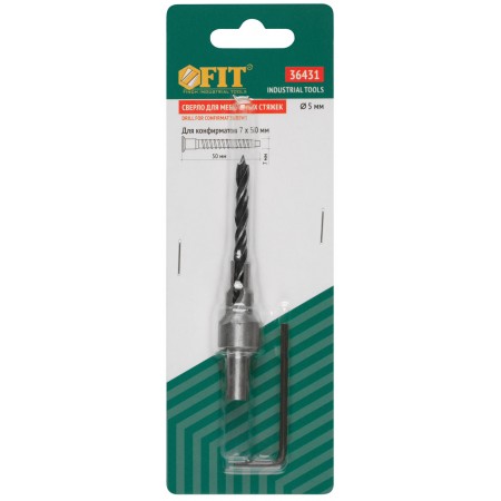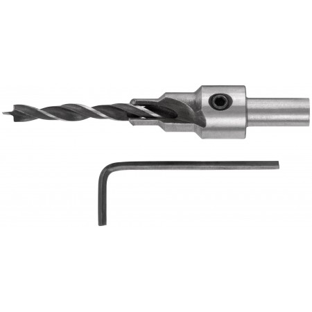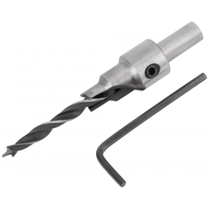 Для сверления отверстий в древесине под ме-бельную стяжку «конфирмат». В комплекте: сверло, держатель сверла с зенкером, ключ шестигранный. Материал: инструментальная сталь. Упаковка: блистер.